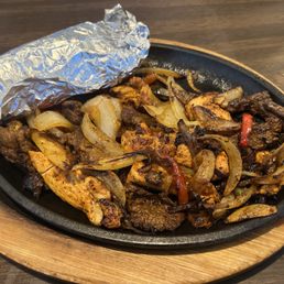 Nice ambiance for a small strip-center spot. Service was excellent, and the food was very good. Had shrimp fajitas and it included a nice portion of nice-sized shrimp. It comes with the grilled onions and red and green pepper (along with rice and beans), and you pick two additional from cheese, sour cream, guacamole, etc. only came with two tortillas, but they offered more so all good! Also had a skinny margarita which was very tasty. And chips and salsa were very good. Will return for sure.
